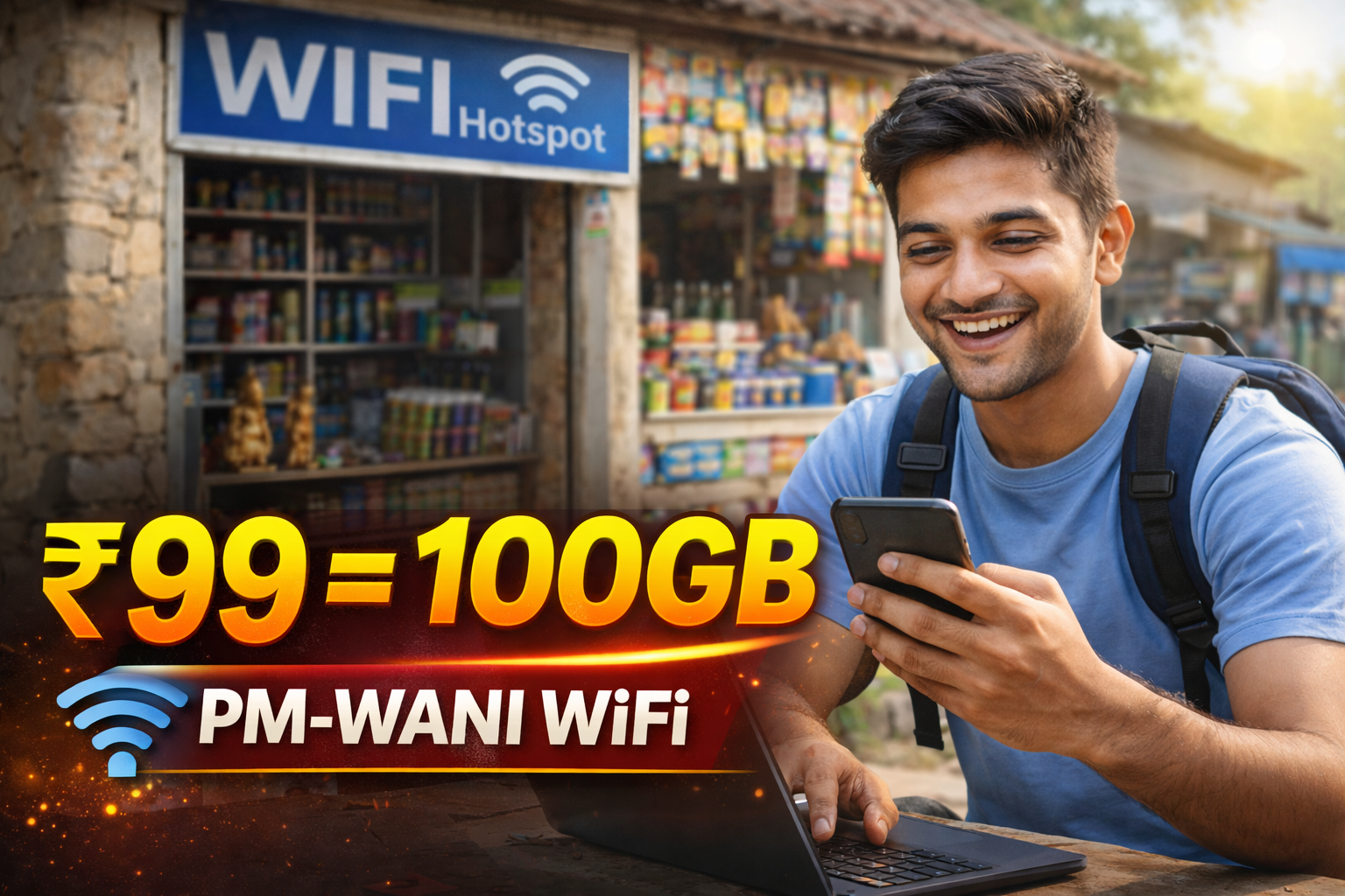 PM-WANI ಯೋಜನೆ ಭಾರತದಲ್ಲಿ ಸಾರ್ವಜನಿಕ ವೈ-ಫೈ ಪರಿಕಲ್ಪನೆಯನ್ನು ಸಾಮಾನ್ಯ ಜನರ ಹತ್ತಿರಕ್ಕೆ ತರುತ್ತಿದೆ. ₹99ಕ್ಕೆ 100GB ಎಂಬ ಅಗ್ಗದ ಪ್ಲಾನ್ ಜನರಿಗೆ ಡಿಜಿಟಲ್ ಸೇವೆಗಳ ಪ್ರವೇಶ ಸುಲಭಗೊಳಿಸುತ್ತದೆ.